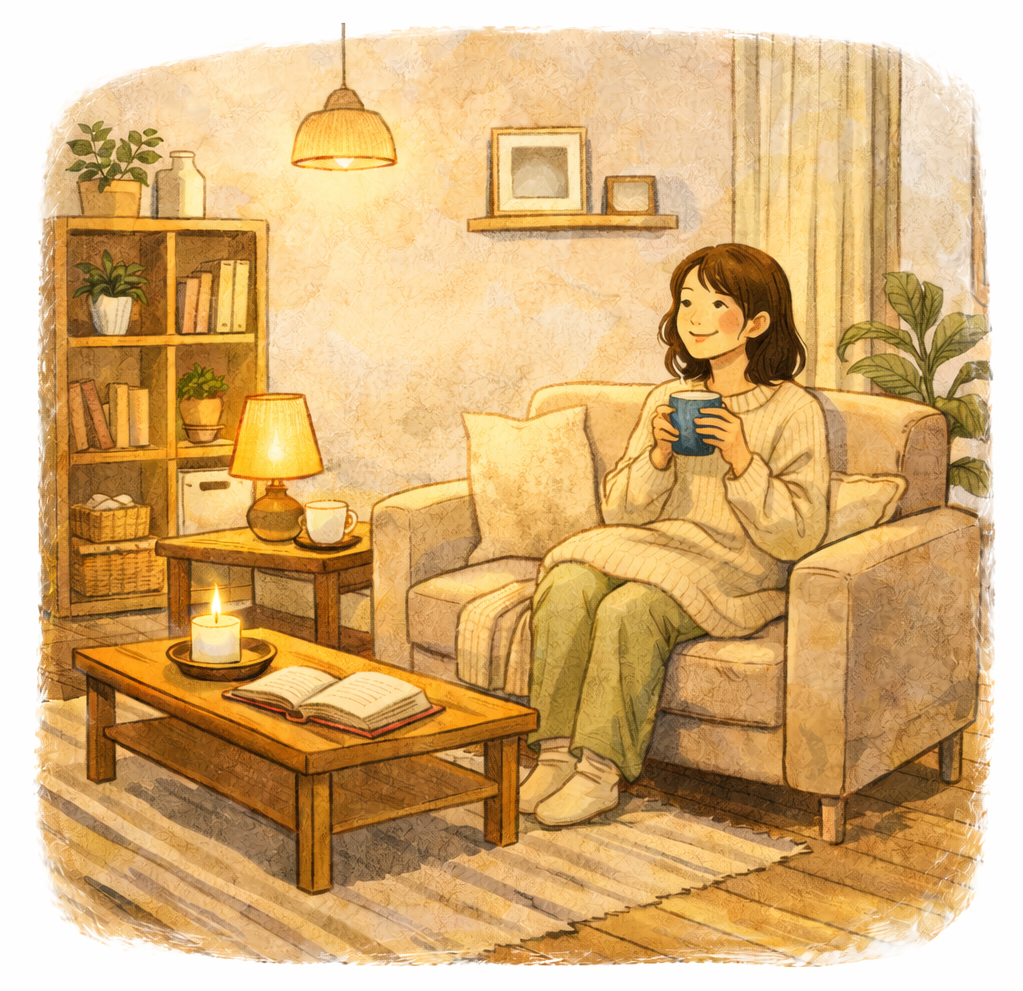 お気に入りの飲み物や音楽、やわらかな灯りを用意して、「自分のための時間」を意識してみてください。